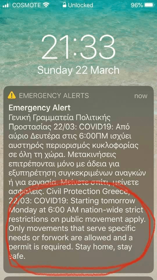 If you wanted to be out of your house, you got clearance through an sms app, for one of 6 reasons to be out.