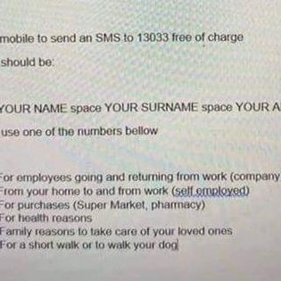 If you wanted to be out of your house, you got clearance through an sms app, for one of 6 reasons to be out.