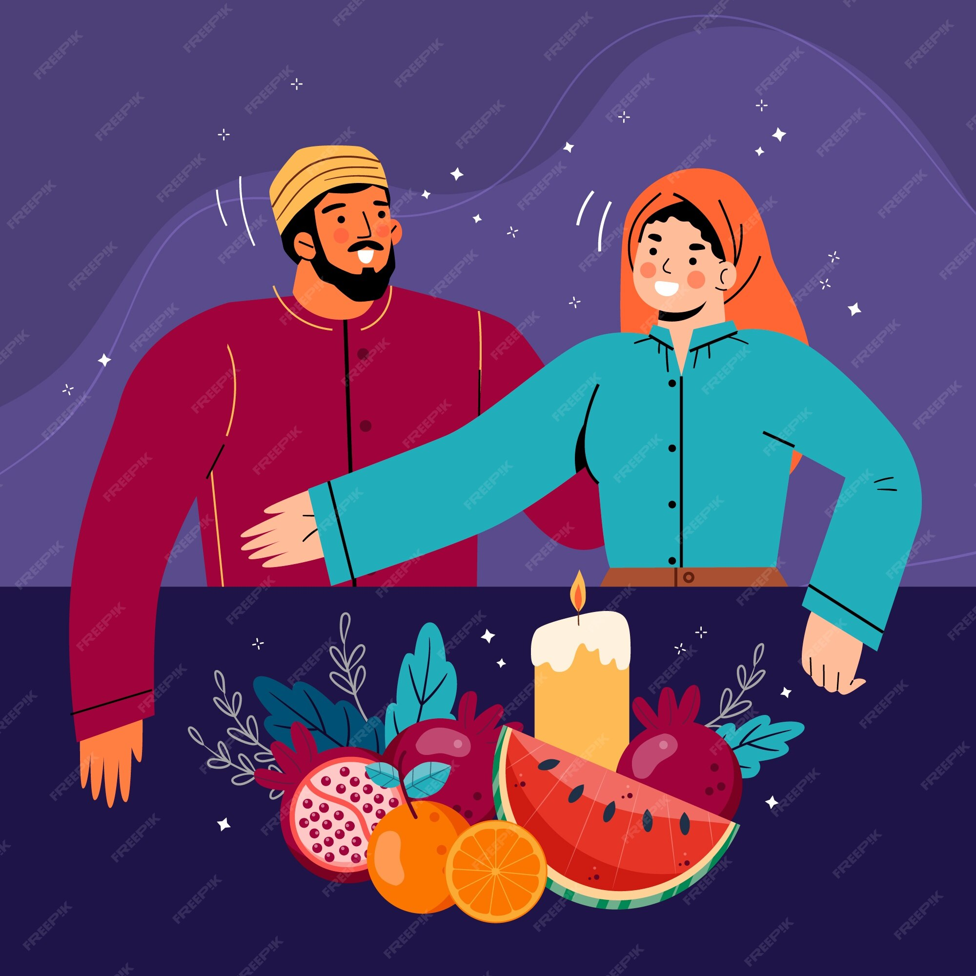 An Iranian festival celebrating the longest night of the year, traditionally observed with poetry readings, feasting on fruits like pomegranates, and family gatherings.