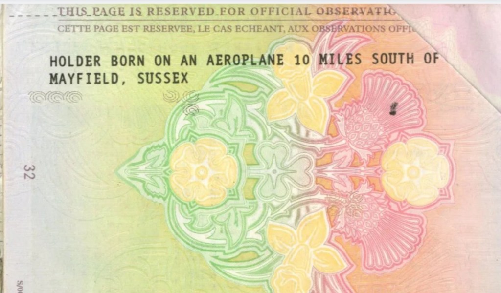 To the bemusement of immigration officials, her passport read: “Holder born on an aeroplane.”